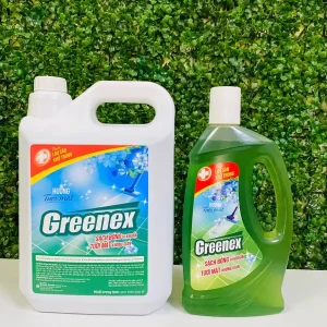 Nước lau sàn Greenex, do công ty Green Cross Việt Nam sản xuất, là một sản phẩm chất lượng cao trong danh mục hàng tiêu dùng của công ty, bao gồm nước rửa tay, nước xả quần áo, và nước giặt. Greenex được đóng gói trong can 5L với thiết kế vỏ ngoài bắt mắt, kết hợp màu xanh và trắng tươi mát.